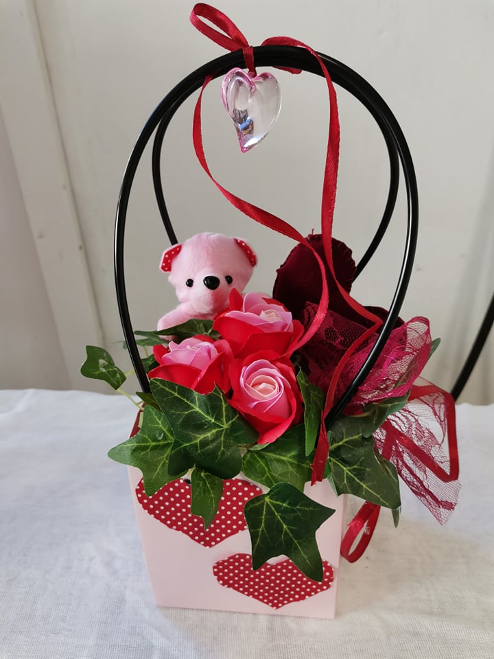 ΤΣΑΝΤΑΚΙ ΜΕ ΜΕΤΑΞΩΤΑ ΤΡΙΑΝΤΑΦΥΛΛΑ ΛΟΥΤΡΙΝΟ ΚΟΥΚΛΑΚΙ ΚΑΙ ΧΕΙΡΟΠΟΙΗΤΗ ΚΑΡΔΙΑ.